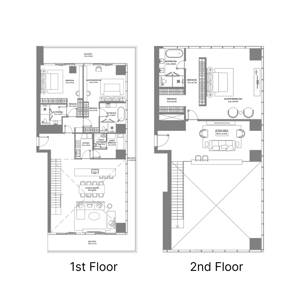 1〜4ベッドルームのアパートメント、 2〜3ベッドルームのデュプレックス(メゾネットタイプ)、 5ベッドルームのペントハウス、 そして5ベッドルームのプレジデンシャルスイートをご用意。