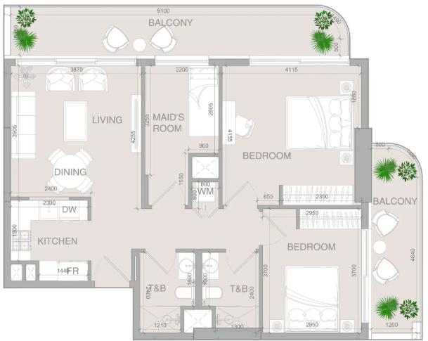 - 2 ベッドルーム