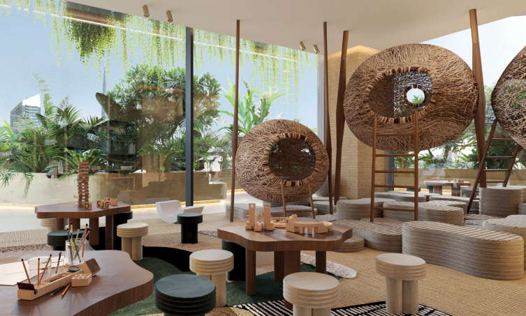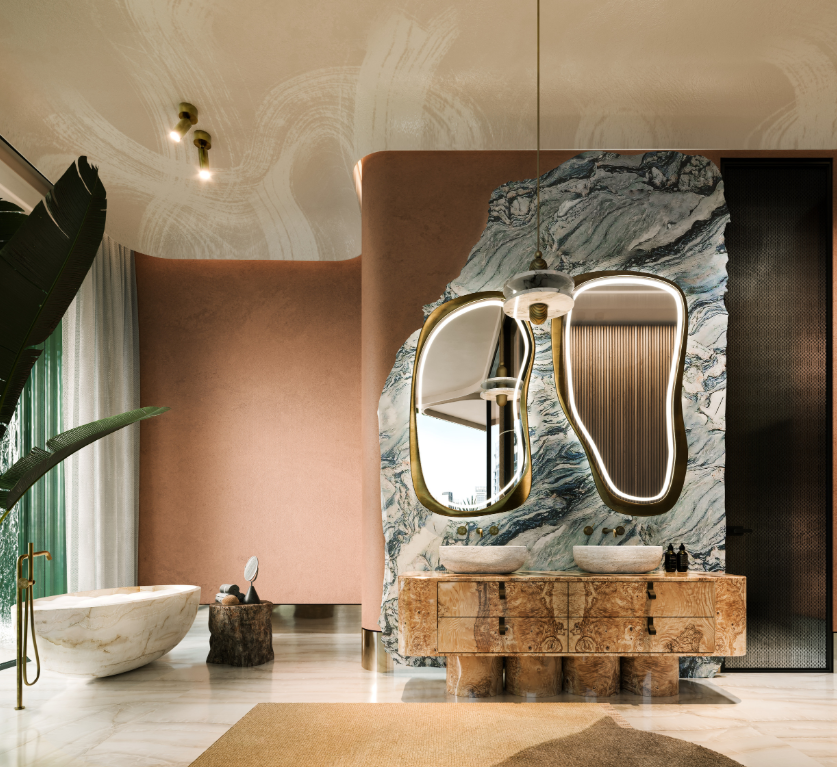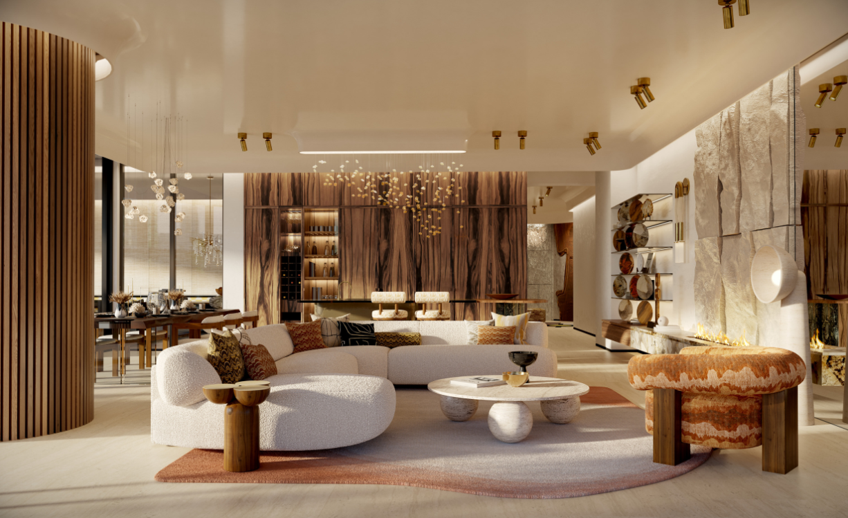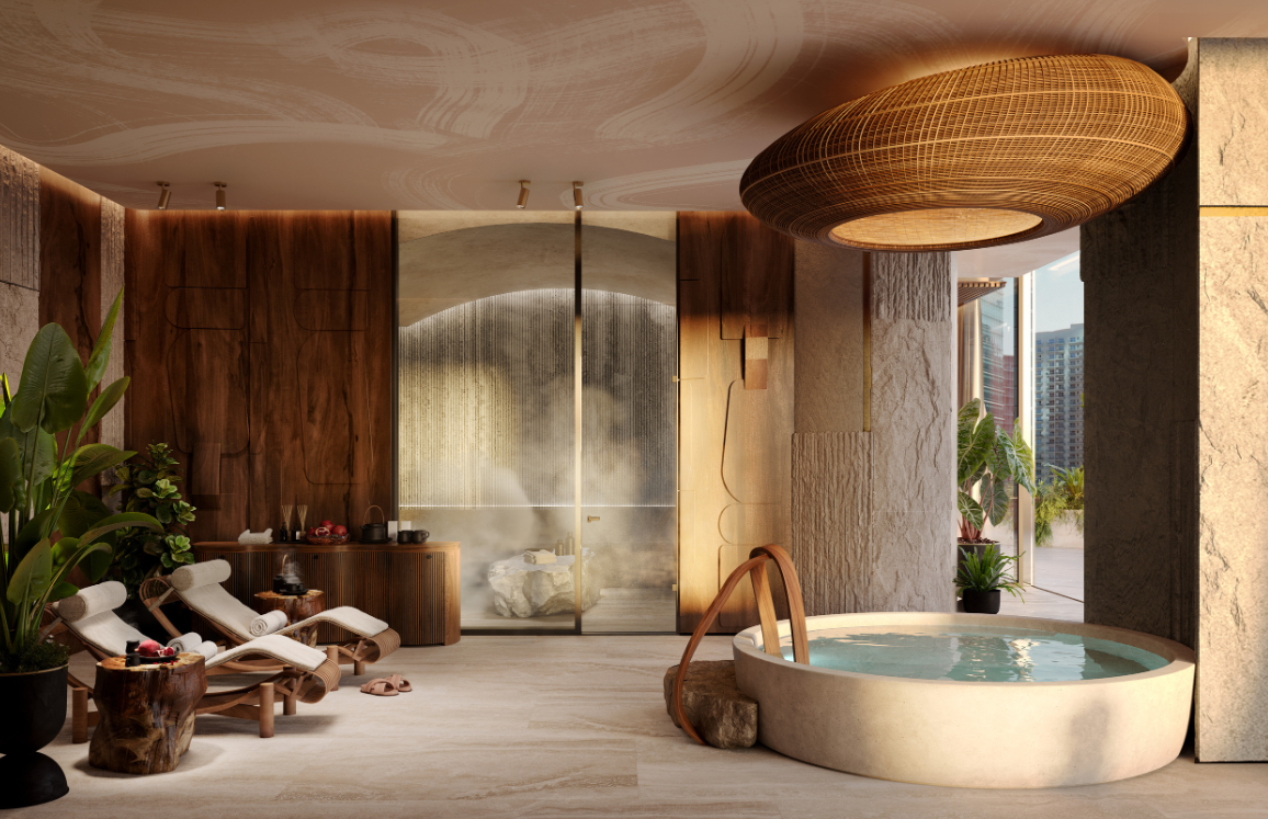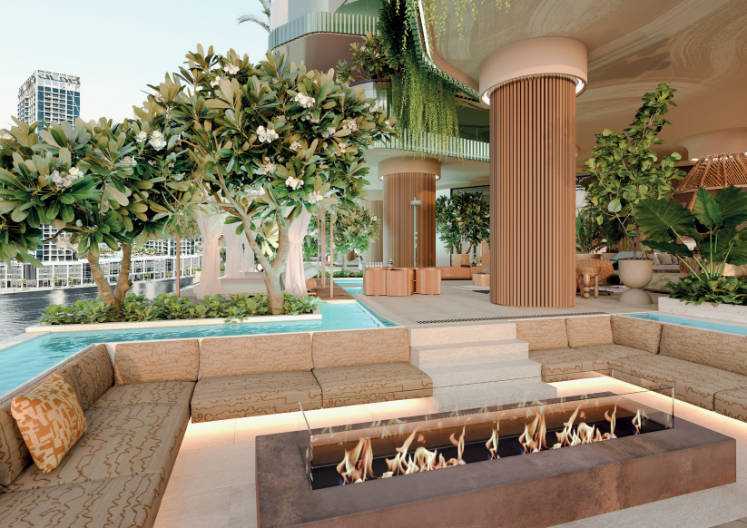 自然素材をふんだんに使用したラグジュアリーな内装仕上げ。ドバイウォーターカナルのラグーンとドバイスカイラインを見渡す壮大なビュー。すべてのアパートメントにプライベートテラス+プールを設置。一部住戸には専用ウォーターフォール(滝)を採用。住戸内のクリスタル配置等について、ヴァーストゥ・シャーストラ(Vastu Shastra)の専門家推奨に基づくデザイン提案。 キッチン:世界有数のブランドによるショーキッチンを採用し、デザイン性と機能性を両立。 造り付けのエクスクルーシブなワードローブ(In-built exclusive wardrobes)。高級仕様のバスルームフィッティング(Exquisite furnished bathrooms)。