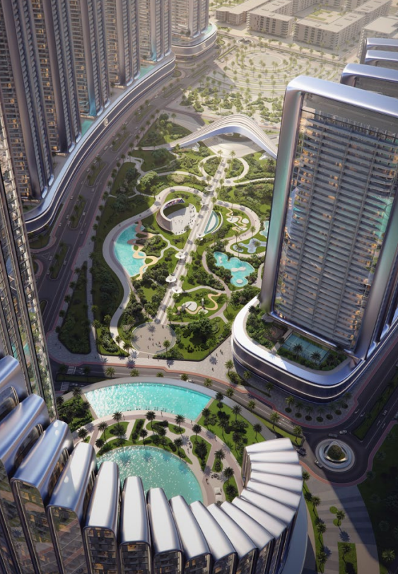 メルセデス・ベンツプレイス — ビンガッティシティは、世界初のメルセデス・ベンツブランド都市として構想されており、ブランド不動産の新しいベンチマークを確立しています。ビンガッティ・デベロッパーズとメルセデス・ベンツ・グループAGの協力により開発されたこのプロジェクトは、真の「都市内都市」として設計された完全なマスタープランの複合タワー地区です。建築的アイデンティティは、メルセデス・ベンツの「感覚的純潔性」哲学によって形成され、精密性、時代を超えた美学、優雅なフォルムを通じてブランドの設計言語を建築環境に表現しています。マスタープランは、歩行者向けで自己維持可能な都市目的地として構想されており、日常生活がシームレスに展開される場所です。包括的なライフスタイルエコシステムには、造成公園と緑の回廊、小売大通り、文化・レジャースペース、ウェルネス・スポーツゾーン、モビリティハブ、厳選されたダイニング・エンターテイメント会場が統合されています。