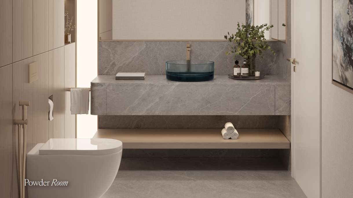 高級素材を使った上質な室内仕上げが特徴です。リビングルームはイタリア産大理石タイルと高品質の壁材で統一され、高級感あふれる空間になっています。天井高は3.5メートル以上の開放的な設計で、自然採光が十分に取り込めます。バスルームは大理石またはクォーツのカウンタートップ、デュアルシンク、レインシャワーヘッド、高級水栓など、ラグジュアリーな設備で完備されています。寝室の床には高級無垢材またはポーセリンタイルを使用し、快適さと耐久性を兼ね備えています。ドアや窓枠、階段などは上質な木材またはアルミニウムで製作され、モダンで美しい空間を実現しています。