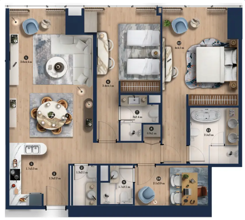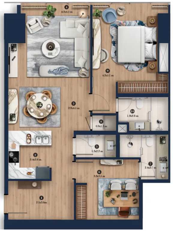 各住居は、ヒルトンブランドのシグネチャーエレガンスと日常の贅沢を体現するデザインが施されています。現代的な仕上げ、広々とした居住空間、洗練されたマテリアルパレットを特徴とする、よく設計されたレイアウトを採用しています。アパートメントは家具なしでの引き渡しとなりますが、高品質な現代的仕上げが施されており、ヒルトンにインスパイアされた快適性・機能性・時代を超えた魅力のデザイン原則を活かしながら、住居を個性豊かにカスタマイズすることができます。